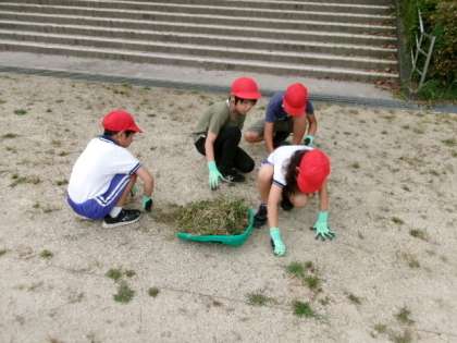 9月4日(月)午後1時25分からの外清掃の様子です。久しぶりの外掃除だったため、たくさんの木の葉を集め、たくさんの草を抜き、どの児童も大忙しでした。まだまだ、暑い中での外清掃となります。熱中症予防を確実に行いながら、少しずつでいいので、体調に気をつけながら、明日からも頑張ってくださいね。