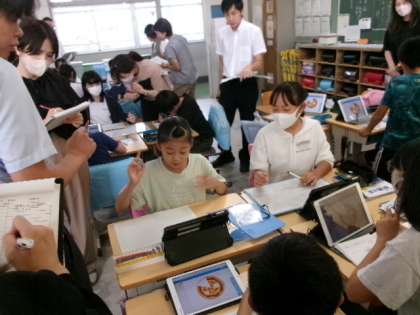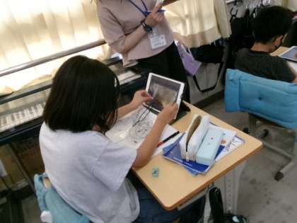 9月28日(木)第5校時、他の学校から指導員の先生をお招きし、5年生の1クラスで算数の研究授業をしました。「目指せ、ピザ屋さん」という単元で、異分母分数の足し算について考える授業でした。タブレットを使って自分の考えをまとめ、グループで意見を交換し合い、クラス全体で「なんで通分して計算したのか」を考えました。どの子も大変反応がよく、よい意見がたくさん出ました。井上小学校の教員一同、これからも授業力アップに向けて頑張っていきます。