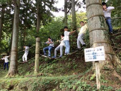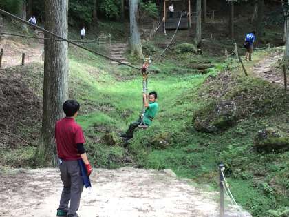 アスレチックBエリアです。岩登りに忍者ロープ、ロープウェイです。ロープウェイから降りてきた子のほとんどが「めっちゃ楽しかった」とつぶやいていました。