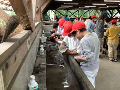 野外炊事の続きです。米を研ぎ、野菜を切り、薪を上手く組めました。次は、いよいよ初めての火起こしです。
