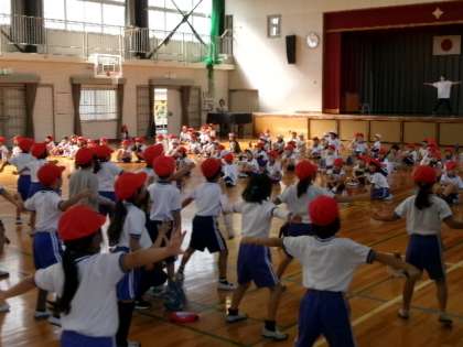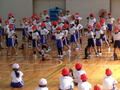 今週から、10月28日(土)の運動会に向けて、表現運動(ダンス)の学年合同練習が始まっています。10月12日(木)の第2校時は低学年(1・2年生)の合同練習が体育館で行われていました。1年生と2年生が互いに自分たちの踊りを見せ合いながら、本番に向けての練習を進めていました。あと約2週間で本番です。きっと、素晴らしい演技を見せてくれると思います。