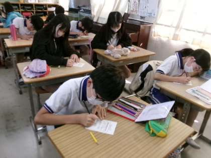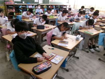 10月12日(木)は、「第3回ハッピーデー」でした。全校児童が給食後一斉に、友だちのよいところを「たからさがしカード」に書き、互いに認め合う活動をしました。1年生のある児童は「いつもていねいに じをかいていてえらいね」と、4年生のある児童は「いつもしせいがよくて、みんなの見本ですね」とカードに書いていました。きれいに飾り模様を描いたり、色鉛筆で色をぬったりしてあるカードも多くありました。心のこもったカードもらった子は、とてもうれしくなるでしょうね。