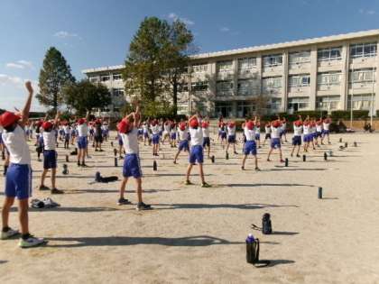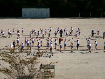 10月17日(火)第5・6校時運動場で、高学年(5・6年)の合同練習がありました。今日は、「気を付け」の指先の位置や、つま先の開き方の確認からはじまり、踊りながらの隊形移動の練習も行いました。