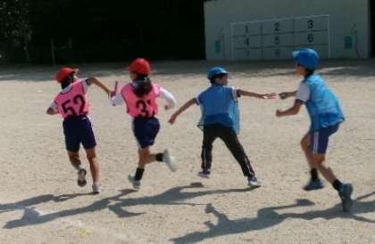 10月27日(金)第1・3校時、3・4年生が、運動会に向けての最後の合同練習を行いました。1枚目は競技「みんなDE玉入れ」の様子です。入りやすい投げ方を考えながら練習しました。2・3枚目は「つなげバトン!みせろ絆!クラス対抗全員リレー」の様子です。運動場いっぱいに応援の声が響き渡り、大変盛り上がっていました。