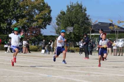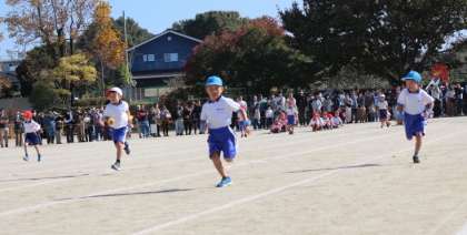 プログラム第2回は、同じく1・2年生のかけっこ「ロケットダッシュ!!」でした。どの児童も、最後まで力いっぱい走りきっていました。