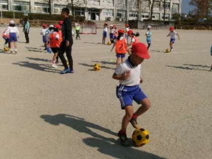 11月2日(木)第2・3校時運動場にて、グランパスから2名の講師をお招きし、2年生対象の「ボールクリニック」を実施しました。