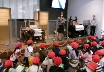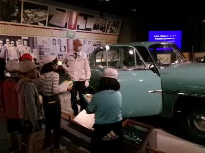 11月7日(火)午前中、4年生が、豊田市池田町にあるトヨタ鞍ヶ池記念館へ校外学習に出かけました。全体で記念館の方からのお話を聞き、その後、館内を自由に見学しました。