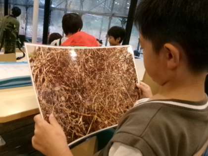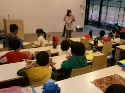 11月10日(金)午前中、昨日に引き続き2年生2クラスが、豊田市自然観察の森へ校外学習に出かけました。あいにくの天気のため、虫探しの練習や工作といった雨天メニューとなりました。