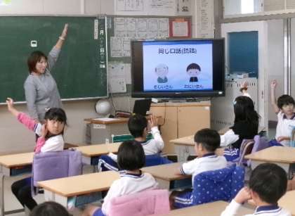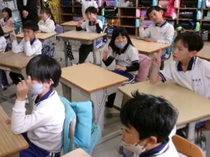障がいを理解するための実践教室の続きです。2年生は、聴覚障害の方と手話通訳の方の2名を講師にお招きし「手話体験」を行いました。「おにいさん」と「おじいさん」など、口の形が同じ言葉は判断が難しいことを教えていただいたり、「何?」「ありがとう」などの簡単な手話を教えてもったりしました。