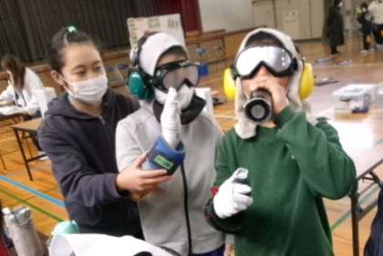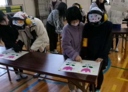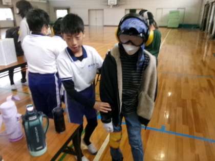 6年生は体育館で「高齢者類似体験」をしました。日頃何気なく当たり前のようにしている動きでも、高齢者にとってはとても大変なことを、身をもって感じることができました。