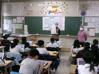 12月1日(金)第3校時、外部から2名の講師の方をお招きし、5年生対象に、障がいを理解するための実践教室「点字体験」を行いました。