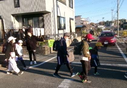 朝は特に、たくさんの車が通ります。安全にはくれぐれも注意してくださいね。