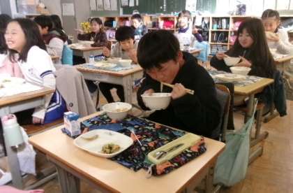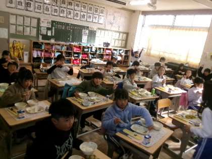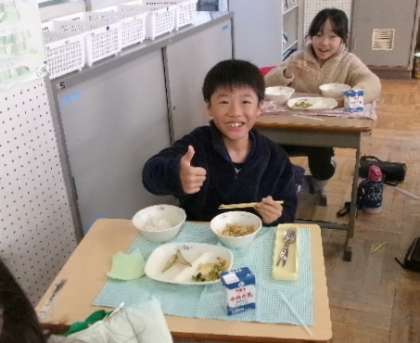 12月8日(金)の3年生の給食の様子です。献立は、おひたし・わかさぎのから揚げ・ごはん・高野豆腐の卵とじ・牛乳です。「わかさぎのから揚げは少し苦いけど、大人の味でおいしい」と言っている児童もいました。何でもおいしく食べられるといいですね。