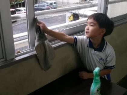 12月12日(火)清掃強調週間の様子です。今日のポイントは、「いつもは掃除しないところ」でした。台の物の下や窓のさん、エアコンのフィルターまで掃除している児童がいました。「今年の汚れは今年のうちに」きれいにしたいですね。