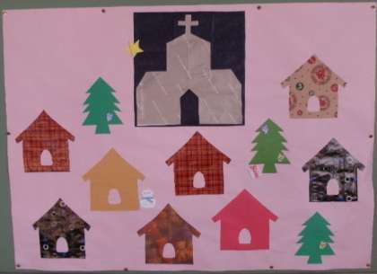 火曜日に借りると折り紙を貼ることができる掲示板も、クリスマス仕様の下絵が貼られ準備万端です。お正月の羽子板や和凧の高い完成度には、脱帽するしかありません。