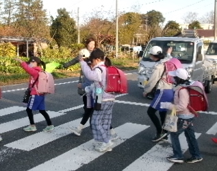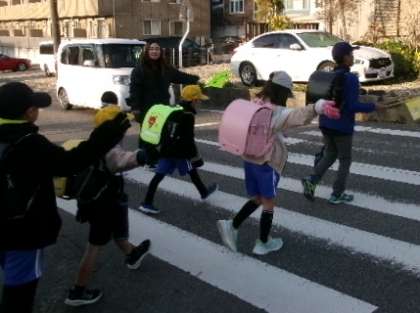 12月20日(水)御船地区の登校の様子です。どの通学班も、横断歩道では左右の安全を確認した後、しっかり手を挙げて横断しています。PTAの見守り活動、いつもありがとうございます。