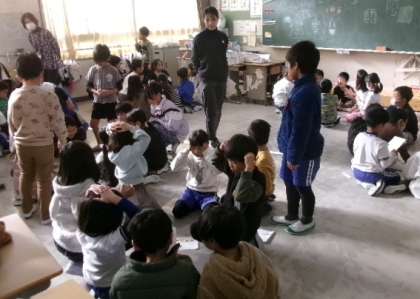 1・2年交流活動の続きです。もう一クラスは、2年生の教室で行っていました。どちらも、とても楽しそうに活動していました。