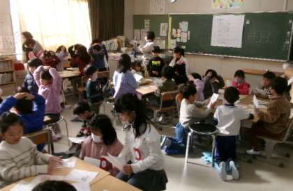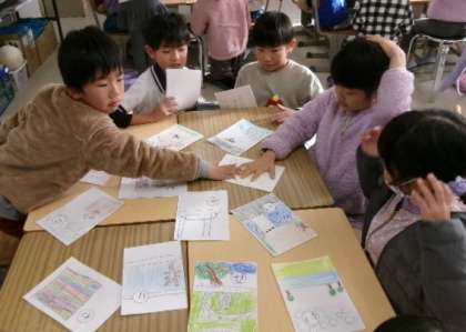 12月22日(金)第1校時2年教室にて、1・2年生が「学区探検カルタ」で交流していました。楽しく集中して活動していましたね。