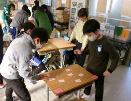 12月22日(金)第1校時教室にて、5年生が百人一首をしていました。明日からの冬休みも、日本の文化に親しむ機会にできるといいですね。