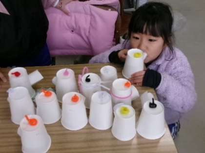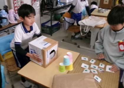 第3校時の2年生図工「楽しくあそべるおもちゃを作ろう」の様子です。空気砲や魚釣り、モールがクルクル回るおもちゃなど、とても楽しいおもちゃが、たくさん出来上がっていました。