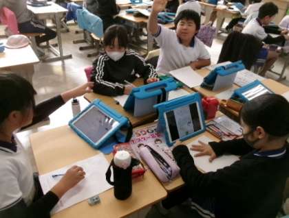 1月23日(火)第4校時、4年生が「SDG‘s」のグループ学習をしていました。協力して楽しく学習しています。