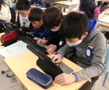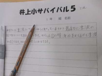 1月23日(火)第4校時、5年生が防災「サバイバル5」の学習をしていました。とても真剣に取り組んでいました。