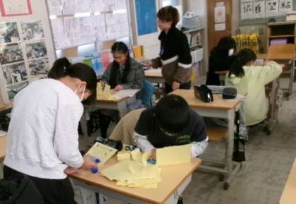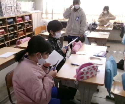 1月26日(金)第4校時、5年生が、6年生を送る会の準備をしていました。6年生が卒業すると、5年生が最上級生になるんですね。学校の機関車としての活躍を、よろしくお願いしますね。