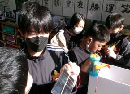 1月29日(月)第3校時、6年生理科「電気の作り方を調べよう」の様子です。太陽電池による発電で、ぐるぐるモーターが回り、多くの児童が目を輝かせていました。実験って楽しいですよね。