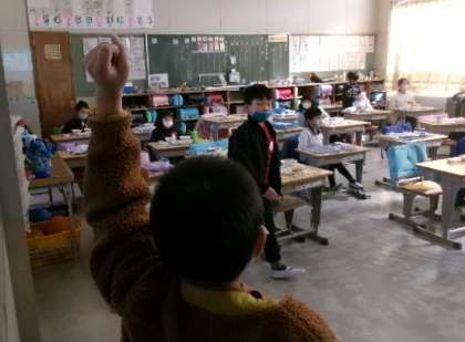 1月29日(月)2年生の給食の様子です。あるクラスでは、取りに来る班を指示したり、時間を計測したりする係が前に出て活躍し、静かに落ち着いて素早く配膳ができていました。献立は、花型はんぺん・すきやき風煮・和風サラダ・ごはん・牛乳でした。今日も、楽しくおいしくいただきました。