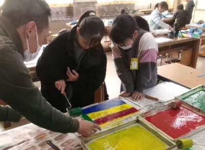 1月30日(火)第2校時図工室、3年生の図工「スチレンはんが」の様子です。色鮮やかでとてもきれいですね。