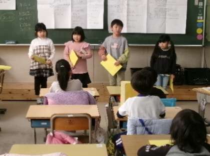 1月30日(火)第2校時、1年生が授業参観の発表練習をしていました。自分たちだけで立派に発表できるように、頑張って練習していました。授業参観当日が、大変楽しみです。