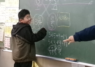 2月2日(金)第1校時、4年生算数「帯分数と仮分数」の様子です。たくさん手が挙がり、どの子もとても意欲的に発表していました。また、友達の考えをしっかりと聞き、一生懸命考えていました。