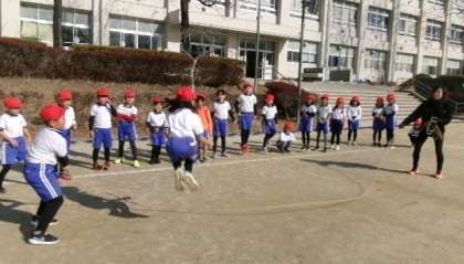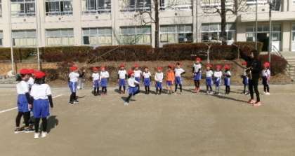 2月9日(金)第2校時2年生の体育「長なわとび」の様子です。みんなで心を一つにし、大きな歓声が上がっていました。