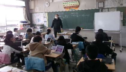 第5校時6年生の理科「プログラムの組み立て方を考えよう」の様子です。みんなとても真剣な表情で取り組んでいます。