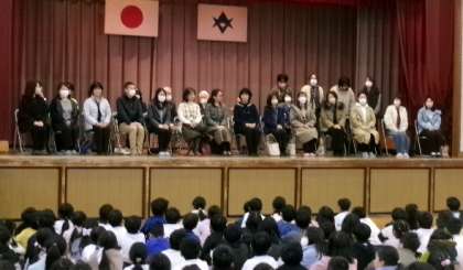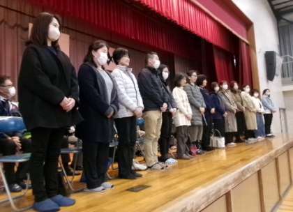 2月15日(木)朝8時40分から体育館にて、日頃お世話になっている地域の方々をお招きし、全校児童で「感謝する会」を行いました。