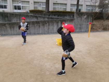 今日は、第2校時後のふれあいタイムとお昼のなかよしタイムの2回、4年生希望者対象の大谷グローブキャッチボール会をしました。曇り空でしたが、初心者の児童も、とても楽しくキャッチボールをすることができました。