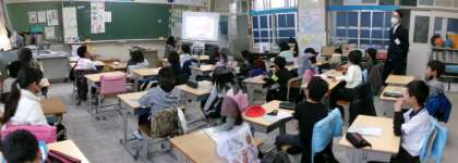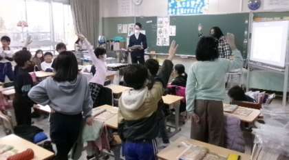 第5校時、4年生の外国語活動の様子です。ALTと一緒に、リズムよく楽しく大きな声で、たくさん英語でしゃべっていました。