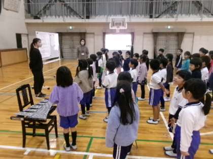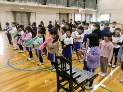 第1校時体育館で、1年生が「6年生を送る会」の練習をしていました。実は、1年生には学級閉鎖になっているクラスがあります。そのクラスの分も、みんなで協力して頑張ってくださいね。