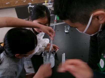 2月28日(水)第5校時4年生が理科室で、「水を冷やしたときの水の変化を調べよう」の授業をしていました。理科の実験は、たくさんの発見があって面白いですね。