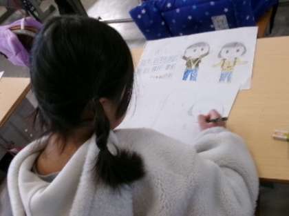 第5校時2年生が教室で、カラーかみはんがの下絵を描いているところです。素敵な作品ができそうですね。