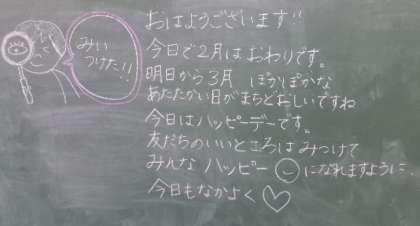 朝教室を回ると、担任の先生からの黒板メッセージが書かれているクラスがあります。