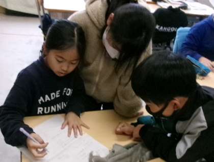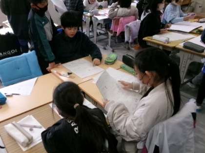 同じく第2校時、4年生の国語「調べたことをほうこくしよう」の様子です。グループで協力して取り組んでいます。