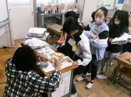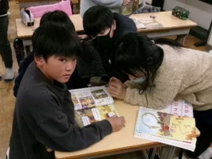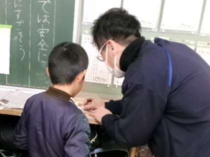 同じく第2校時、3年生の英語の授業です。先生が一人一人確認したり、友達同士で教え合ったりしています。