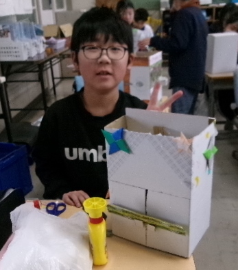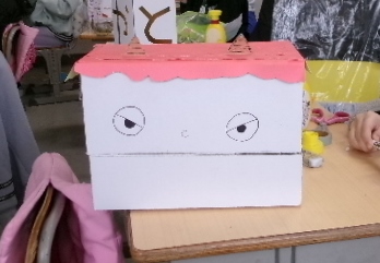 第1校時、4年生の図工「おもしろダンボールボックス」です。個性あふれる作品が出来上がってきましたね。