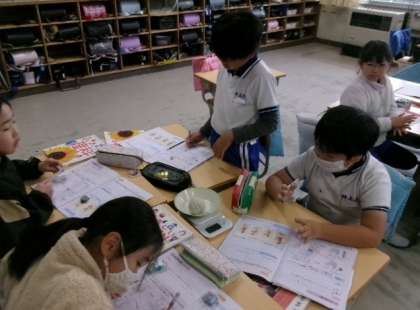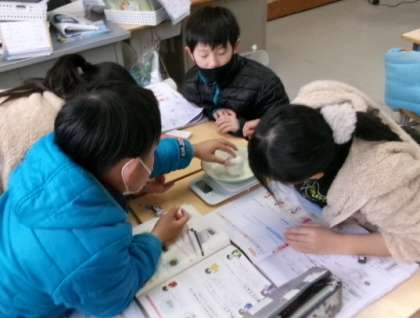 同じく第1校時3年生が教室で、理科「ものの重さ」の学習をしていました。実験結果は予想どうりでしたか?