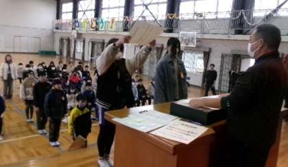 同じく第1校時6年生が体育館で、卒業式の証書授与の練習をしていました。一人一人の晴れ舞台となりますね。