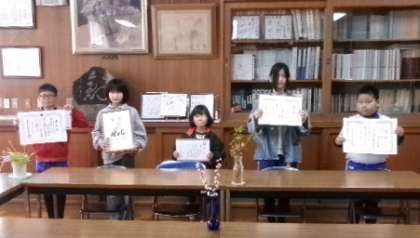 ふれあいタイムに校長室で表彰伝達をしました。習字や感想画、バレーボールやラグビーなどで素晴らしい成績を収めた5名の児童の表彰でした。皆さん、よく頑張りましたね。