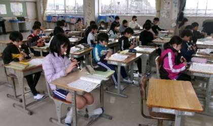第4校時音楽室で4年生が、リコーダーと歌の演奏をしていました。列ごとに交互に歌ったり演奏したりしていました。みんなでリズムを合わせて演奏するのは、とても楽しそうですね。