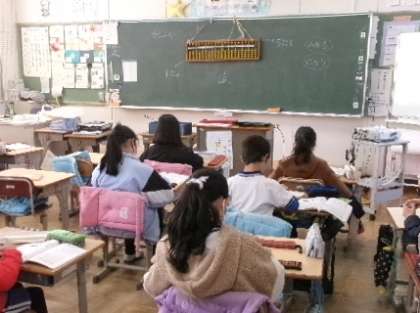 第4校時教室で3年生が、そろばんの学習をしていました。今の時代も「読み・書き・そろばん」は大事ですよね。