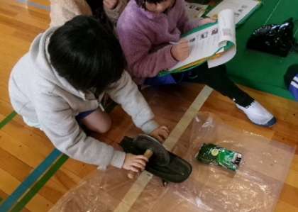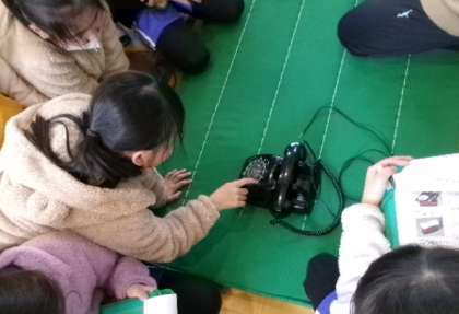 豊田市郷土資料館からお借りしてきた古い道具に、どの児童も興味津々でした。私にとっては、黒電話がとても懐かしく感じました。